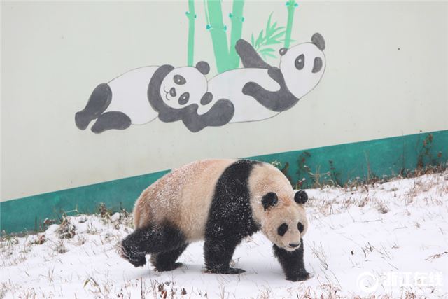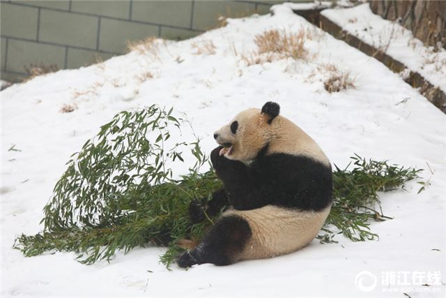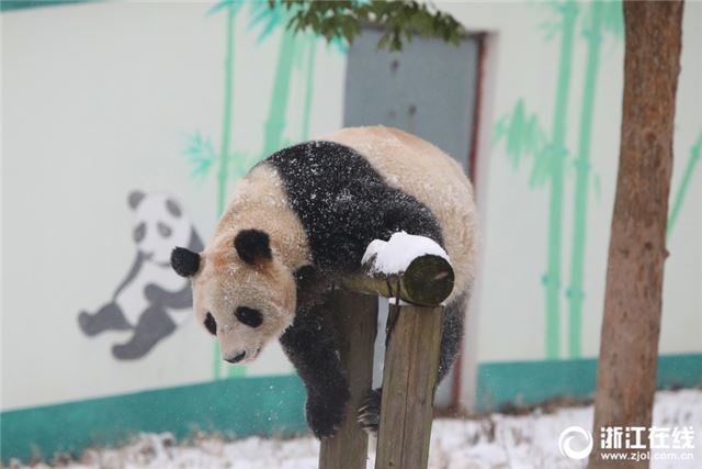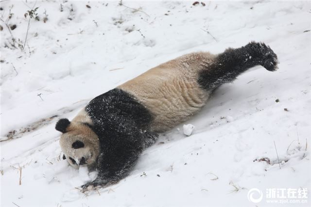 原标题:德清:雪后熊猫 萌态尽显