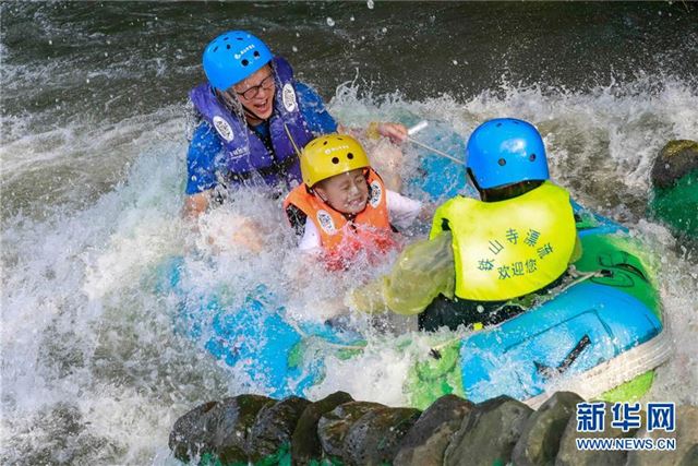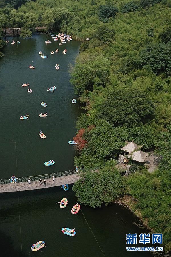 正值暑期,位于江苏中部的淮安市盱眙县乡村旅游项目备受欢迎,人们在山水间享受夏日清凉。新华社发(周海军 摄)