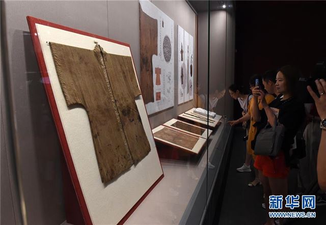 8月7日,观众在参观宋代丝绸文物。 新华社记者 孙参 摄