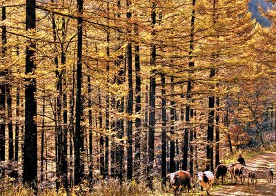 日前,村民赶着牛群走在山西沁源县好地方林场。多年来,该林场共营造人工林2.9万余亩。 |