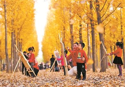 近日,河北省沧州市职教中心幼儿园的小朋友在当地运河森林公园赏秋写生,用手中的画笔留住秋日美景。傅新春 摄