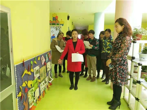 此次活动采取“参观讲解”方式,即各班老师担任讲解员,全面细致地介绍本班主题墙、特色作品墙及环境创设的思路和方法,由郝园长带领当天上午主班教师参观学习。
