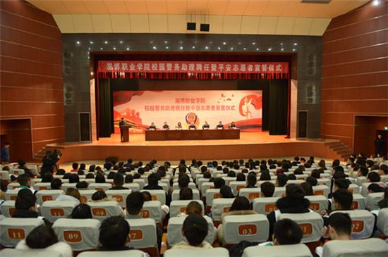 12月11日下午,淄博职业学院音乐厅,近千名大学生和他们的辅导员们,怀着激动的心情,参加了“淄博职业学院校园警务助理聘任暨平安志愿者宣誓仪式”。淄博职业学院书记张爱民,淄博职业学院院长杨百梅,周村区副区长、周村公安分局党委书记、局长张国华,周村公安分局政委高明伟等领导出席活动。