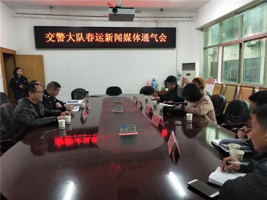 2月26日,新化县公安局交警大队邀请娄底日报社等相关主流媒体记者举行新闻媒体通气会,通报全县春运交通安全工作情况。大队领导刘叶青、刘志兰等出席。