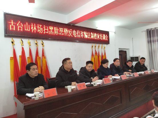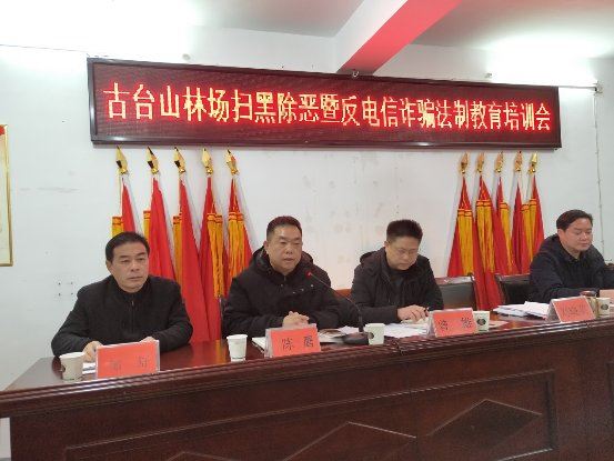 2月27日,湖南新化古台山林场举办扫黑除恶暨反电信诈骗法制教育培训班,该场机关全体干部、各工区干部及辖区单位负责人近80余人参加。县扫黑办副主任陈鹰应邀上法制教育培训课,县人大副主任刘晓英到会指导并讲话。