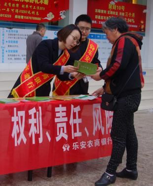 为提升金融消费者风险责任意识、权利意识和风险管理能力,进一步降低金融风险,构建和谐的金融消费环境,3月14日,江西省乐安农商银行在乐安县城街心花园开展以“权利·责任·风险”为主题的3.15国际消费者权益日宣传教育活动。