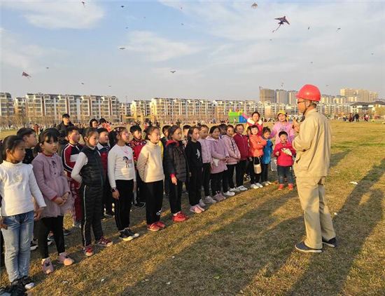 张涛还受老师邀请,在广场上给同学们上了一场春季放风筝安全课。