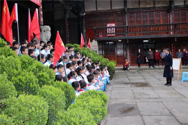 南江县博物馆组织干部职工和长赤龙池书院、仙鹤小学、桥梁小学、南江示范幼儿园等单位、学校、社会团体来到红军石刻标语陈列园缅怀先烈丰功伟绩,重温革命先烈在宝丰的这段如火如荼的革命岁月。