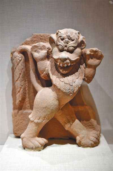 来自新加坡亚洲文明博物馆展品,公元10世纪的砂岩浮雕狮子建筑构件。摄影 李木易
