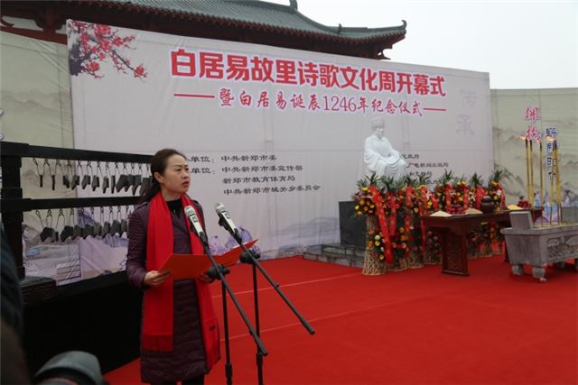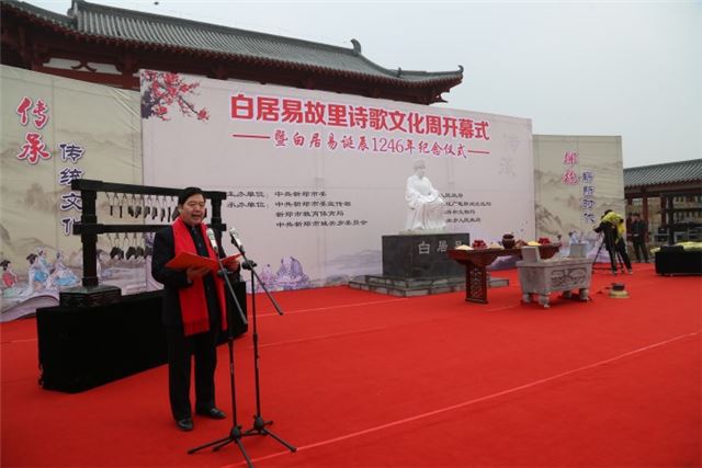 中国基层网总监记者张永泽讯:3月7日,白居易故里诗歌文化周开幕式暨白居易诞辰1246年纪念仪式,在白居易诞生地城关乡东郭寺村举行。