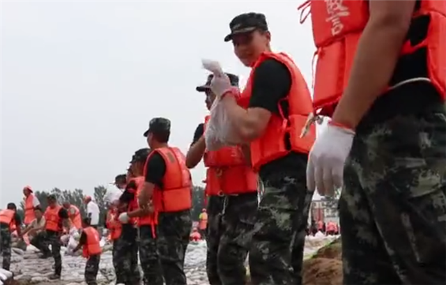 7月23日上午10时许,河南省驻马店市上蔡县小洪河塔桥段出现险情。武警河南省总队驻马店支队官兵紧急出动,赶赴抗洪抢险一线。