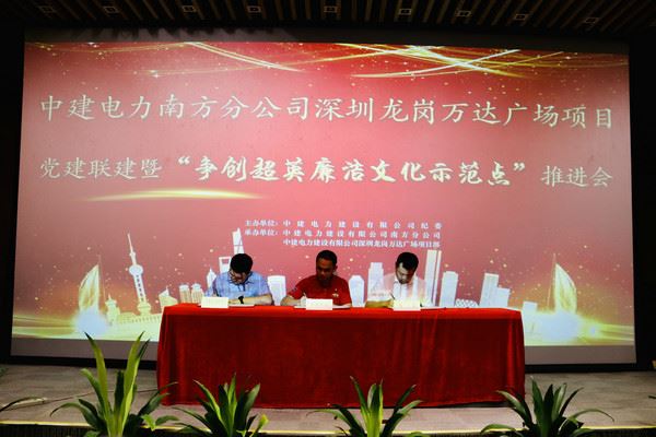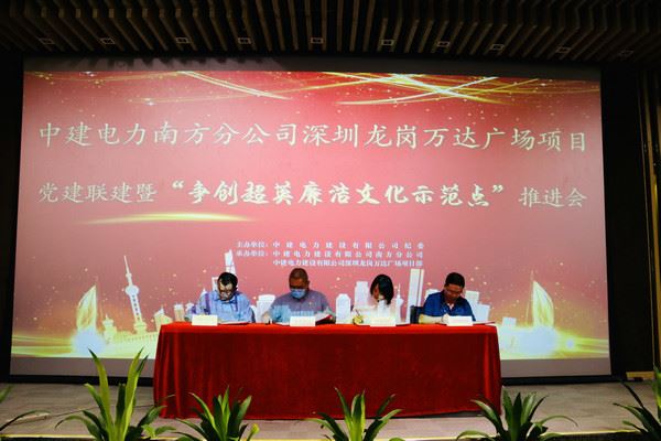 9月11日,中建电力南方分公司在深圳龙岗万达广场项目召开党建联建暨争创“超英廉洁文化示范点”推进会。会议以“争创超英廉洁文化示范点”为抓手,以践行“超英精神”为准则,提高基层管理人员底线红线意识,营造风清气正的工作氛围。