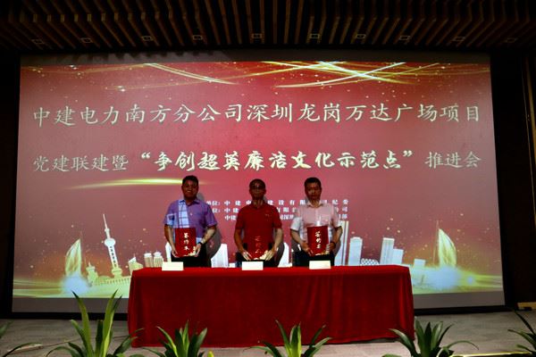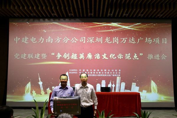 为进一步提高基层廉洁风险防控能力,深圳龙岗万达广场项目积极开展“联创共建”,把廉洁文化融入街道社区和业主单位文化建设中。项目部与深圳市禾花社区工作站党支部、华南城深圳商管公司党支部、暨南大学附属医院深圳华侨医院党总支四方联合,签订《党建廉建协议书》,共同构建“区域化”党建联建模式。深圳市平湖街道办副主任、禾花社区党委第一书记、华南城园区党委第一书记王亮为党建联建示范项目授牌。