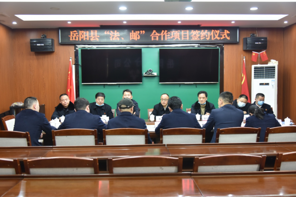 为进一步推进“智慧法院建设”, 2月2日,湖南岳阳县人民法院与岳阳县邮政分公司举行岳阳县“法、邮”合作项目签约仪式。岳阳县人民法院院长、党组书记许辉与岳阳县邮政分公司总经理谢军华分别代表双方签订了合作协议。