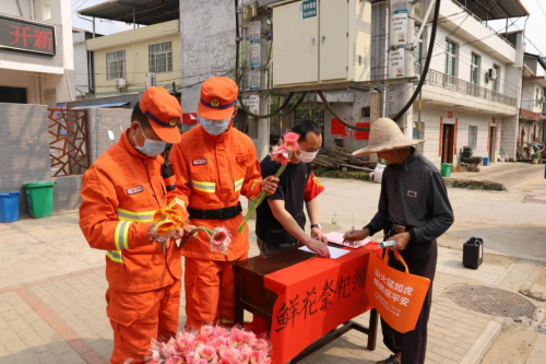 森林消防指战员在以实际行动向群众发出一份清明节文明安全祭扫倡议书,树立文明祭扫观念,倡导鲜花祭扫文明低碳祭扫方式,自觉摒弃焚烧祭品、燃放鞭炮等陈规陋习,过一个绿色环保的清明节,做绿色清明的先行者,促使“文明祭祀”成为清明“主旋律”。