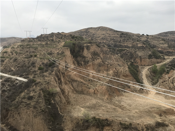 春分后的照老山依旧是寒风卷着沙尘从耳边呼啸而过,举目远眺一片土黄色只有不远处的导线泛着点点银光点缀着这片深山。经过一个半小时的颠簸,汽车在半山腰停下,由于前几天刚下过雨,施工车辆无法继续前行,作业人员扛着工机具,悬式绝缘子等材料有条不紊地前行着。