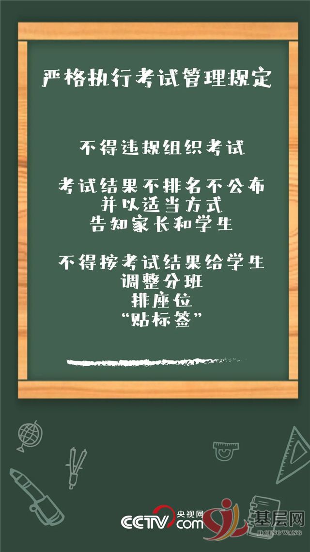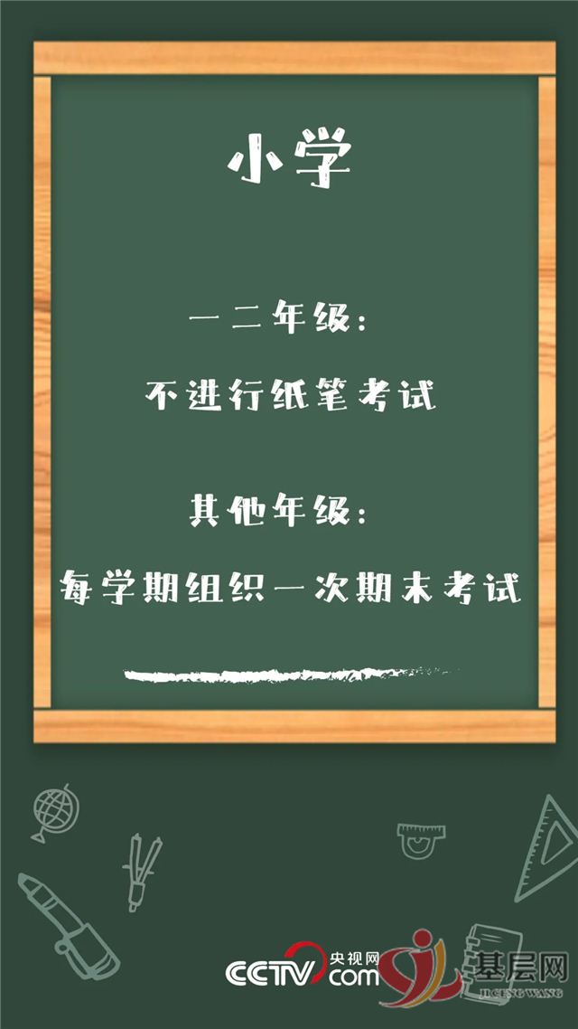 会上透露,义务教育阶段的考试主要发挥诊断学情教情、改进加强教学等方面的功能,除初中学业水平考试外,其他考试不具有甄别功能。根据《关于加强义务学校考试管理的通知》,小学一二年级不进行纸笔考试,其他年级由学校每学期组织一次期末考试;初中年级从不同学科实际出发,可适当安排一次期中考试。要合理控制考试难度,严禁超课标教学进度命题。要合理作用考试结果学校期中期末考试实行等级评价。