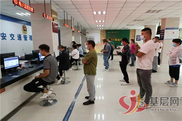 对于到现场办理人员,指定专人做好人员登记和现场秩序维护工作,人与人之间保持1米距离,有序完成扫码、测体温、登记、办理业务等操作流程,办理业务人员需全程佩戴口罩,出示身份证、“双码”(健康码,行程码)均为绿码方可进入业务大厅,合理安排窗口等候人数,办完业务迅速离开。交通管理执法服务中心为方便群众,还推出延时服务举措,中午不休息,周六周日正常办理业务,直至送走最后一名办事群众。