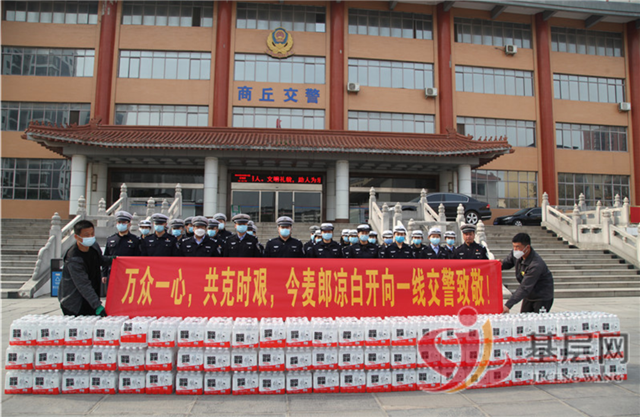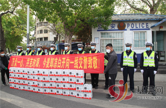 自此轮疫情爆发以来,全体民警辅警充分发扬不怕吃苦、连续作战的精神,疫情不退,交警不退,展现了商丘交警敢打能拼、吃苦奉献的良好精神风貌,抗疫一线执勤交警舍小家保大家的艰苦付出,被社会群众看在眼里记在心里,为表达对战斗在疫情防控一线公安交警的关心,4月12日上午,中国干部书法研究院商丘分院院长崔思惠与爱心企业商丘市梁园区仁文食品销售部总经理赵言升先后到交警支队疫情防控部分检查卡点,慰问奋战在疫情防控检查一线公安执勤民警辅警。并送上今麦郎凉白开饮用水。
