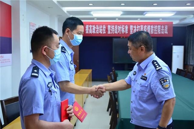 5月24日上午,受分局党委书记、局长丁配杰委托,分局党委副书记、政委孔安,分局党委委员、副局长连广和政治处工作人员先后到桐柏路派出所、棉纺路派出所、秦岭路派出所、刑侦大队、绿东村派出所,向近期在“打现行、破现案”行动中成绩突出荣立个人嘉奖的胡国岭、胡培东、郑凯元、郭晓斐、许松克、张劲松等六名同志一线送奖,鼓舞斗志,激励士气,凝聚更强力量投入党的二十大安保维稳“砺剑铸盾”行动。