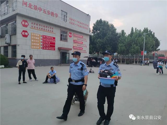 6月9日,景县政府副县长、公安局党委书记、局长曹维新,党委副书记、政委李永强及有关警种主要负责同志陪同下,到河北景县中学、任重完全小学高考考点督导安保筹备工作,要求紧紧围绕防疫、保密、护考、保畅、安全、应急、服务等任务,守土有责、守土尽责,全力落实县委政府和县局党委关于高考安保部署不动摇,以切实行动营造良好考试环境。