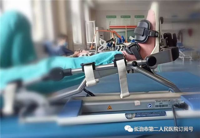 术后第二天在治疗师指导下进行膝关节渐进性屈伸手法练习,从无或微痛⻆度(0~20°)开始。运动范围根据患者对疼痛程度而定。