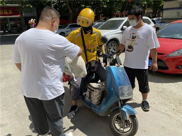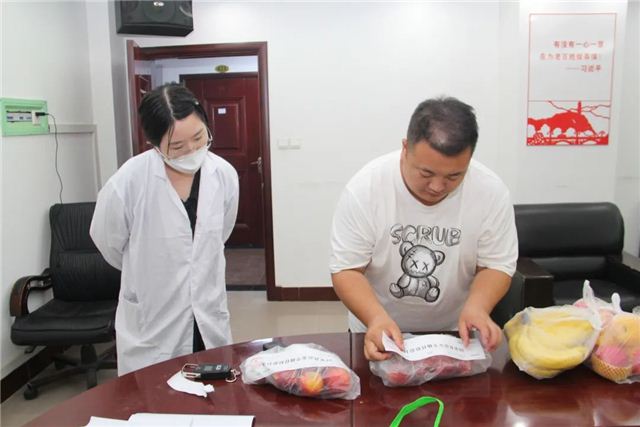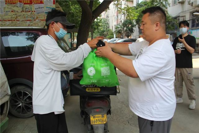 6月16日,执法人员和抽检人员在网上从美团下单,购买了4斤猪肉、5斤豆角、4斤西红柿。下单20分钟后,骑手把所购食品送到检测人员手中。执法人员和检测人员收到货后,现场打包、封签,全程录像,程序严谨。