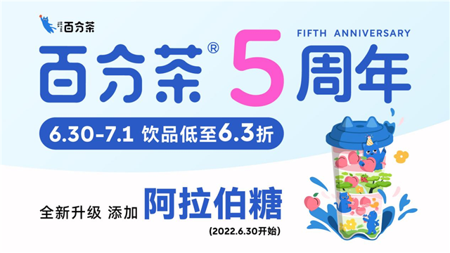 百分茶五周年,全新升级添加阿拉伯糖