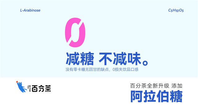 6月30日,百分茶在官方渠道宣布,全店升级添加阿拉伯糖,这意味着新式茶饮的消费趋势正在从低卡低糖迈向抑糖控糖。