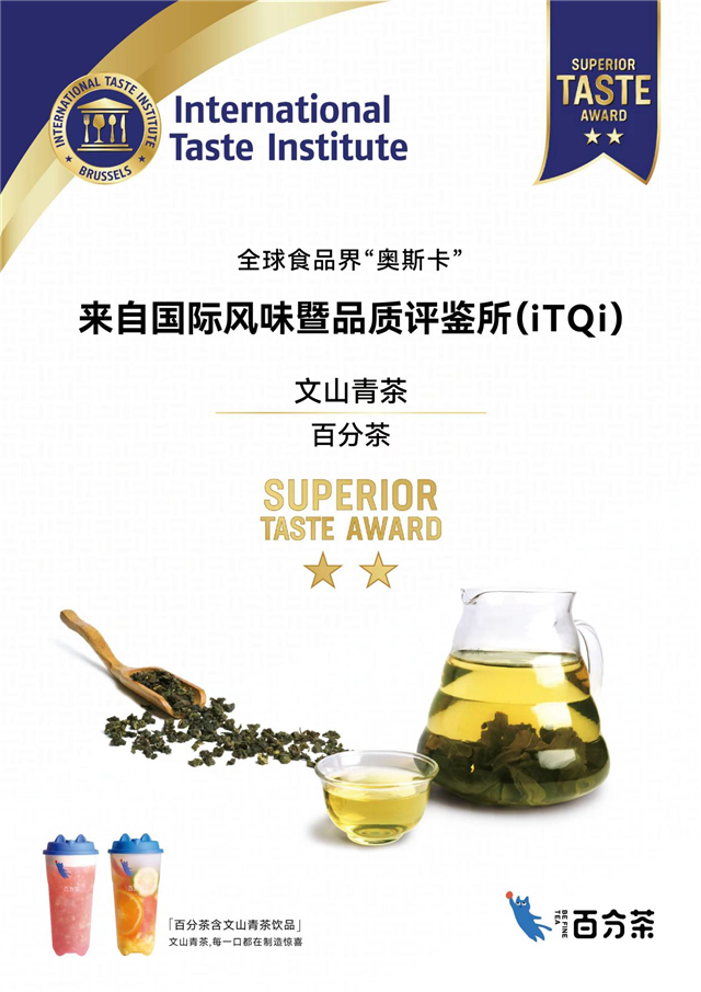 百分茶荣登“世界顶级美味大奖”榜单,其中文山青荣膺2星奖章