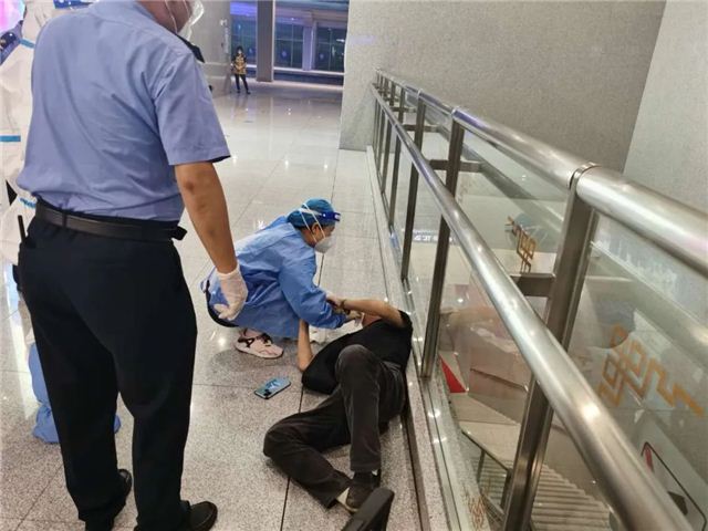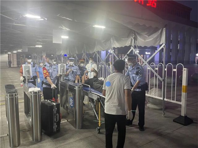 弘扬民主法治精神 促进社会公平正义 当天晚8时左右,长治南站出站口通道内,旅客们正在有序地出站,突然有人大声呼喊,称有人突然倒地不起。正在出站口执勤的高铁大队民警闻讯后,立即与铁路民警前往现场,看见一男子正在地上抽搐。民警随即联系现场防疫医护人员,查看病患情况,紧急做救护工作,并及时拨打120急救电话。为了确保该男子安全,高铁大队民警找来担架,医护人员让该男子平躺处于舒适状态。经过先期处置,该男子体征比较平稳。随后,120急救车赶到现场,民警及现场防疫医护人员一起将该男子抬上120急救车,及时送医接受进一步治疗。