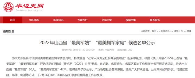 2022年山西省“最美军嫂”“最美拥军家庭”候选名单公示