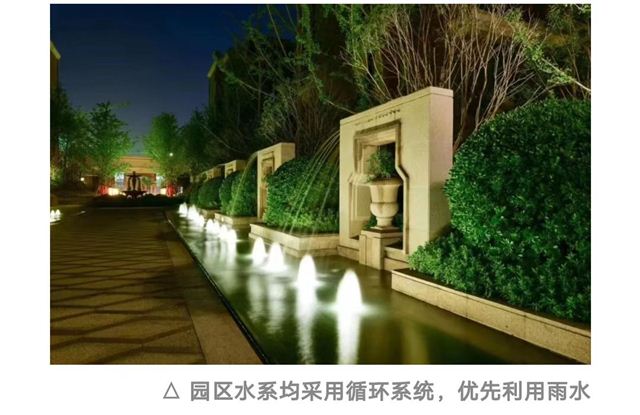 “通过水泵常年动力循环系统,将天然水最终汇聚于5个水系下蓄水池中,同时将天然水引用到园区绿化喷灌,达到水循环利用,节约水资源的目的。”蓝山公馆物业经理宋智珺介绍,小区建设之初就按照海绵社区、雨水花园的标准设计,再加上后期逐步实施的节约用水工程改造,让小区真正实现节水优先,合理用水。