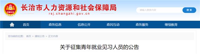 根据山西省人社厅等10部门相关要求 帮助离校未就业高校毕业生 失业青年增强工作经验,提升就业能力 使有见习意愿的青年都能获得见习机会 现面向全市公开招募青年见习人员56人 征集名额 本次共征集5个单位,其中:党政机关单位1个;事业单位1个;私营企业3个,共计岗位56个。 征集对象 高校毕业生范围从《关于印发<高校毕业生就业见习管理办法>的通知》(晋人社厅发〔2010〕115号)中明确的“山西籍生源全日制普通高校毕业生”扩展到“在晋全日制普通高等学校的毕业生以及省外山西籍生源全日制普通高校毕业生”。 见习期限 青年见习人员见习期限为3—12个月,最长不超过12个月。凡符合条件的人员只能参加一次享受就业见习补贴机会。 见习待遇 2.见习单位为就业见习人员购买的人身意外伤害保险保额与工伤保险工亡一次性赔付标准大致相同。人社部门按照每名就业见习人员240元的标准予以补贴。 报名途径及注意事项
