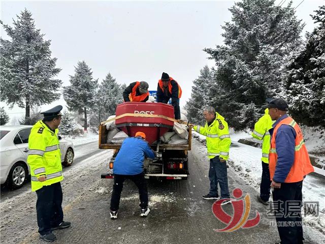 除雪保畅和救援救助工作同步进行,除雪采取“机械+人工”方式开展,应急保畅人员冒雪而进、逆风而行,紧盯关键区域、重点路段,在弯道、陡坡、背阴、桥涵等积雪结冰重点路段抛洒防滑料、融雪剂,出动大型除雪车、融雪剂抛洒车做好除雪破冰作业,同时积极与交警部门联勤联动,加强对易发生拥堵、事故多发等特殊路段的巡查,及时开展交通疏导,确保道路安全通行。