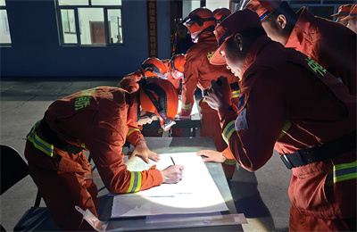此次夜间按图行进训练紧贴日常任务需求,对标实战化对抗比武,大队提前选定周边的陌生复杂地形,安排专人设置坐标点,由各负责人抽签定组,划分行动区域,而后分组行动,共预设15个目标点,划分为3个小组开展对抗比拼,各组进行分析研判、责任分工,判定方向、测量计算、标图定点,依据不同路线行进,在规定时间内完成5个目标点位的寻找。