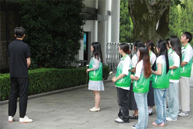 桂子山烈士陵园位于南京市六合区247省道。这里曾是抗日战场,地下长眠着英勇无畏的抗日战士。它始终承担着记录历史、褒扬烈士、传承精神和教育群众的重任,现为市级爱国主义教育基地。为引导青年学子传承红色基因,赓续红色血脉,团队成员们第一站来到桂子山烈士陵园,走过镌刻着“死難烈士萬歲”六个大字的庄严肃穆的烈士纪念碑,凝视铭刻着为祖国、为党和人民献出宝贵生命的1108位六合烈士的英烈墙,了解着先烈的英雄事迹,感受着艰苦革命岁月里革命战士英勇不屈、舍生取义的不朽精神。