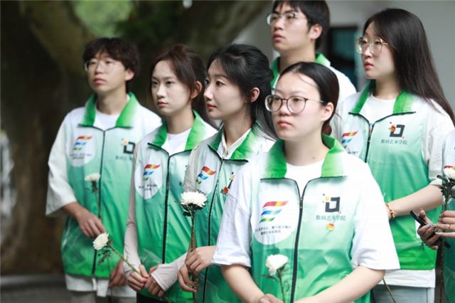 在陵园管理处工作人员的引导下,团队成员们逐一参观了烈士墓区、纪念塔及展览馆,石碑上镌刻着英烈们的丰功伟绩,队员们专注地观看着石碑上的文字,字字刻在心间,同时也聆听着解说员的生动地讲述,烈士们在英勇作战、浴血奋战的英雄事迹在耳边久久回荡。随后,在解说员的带领下,队员们走向桂子山烈士陵园纪念碑集体默哀,在庄严的氛围中,每位队员都排成整齐的队列,向英雄们敬献着菊花,寄托着自己对先烈们深切的哀思与崇敬。深切缅怀那些闪耀在历史长河中的英雄烈士,传承红色基因,担当历史使命。