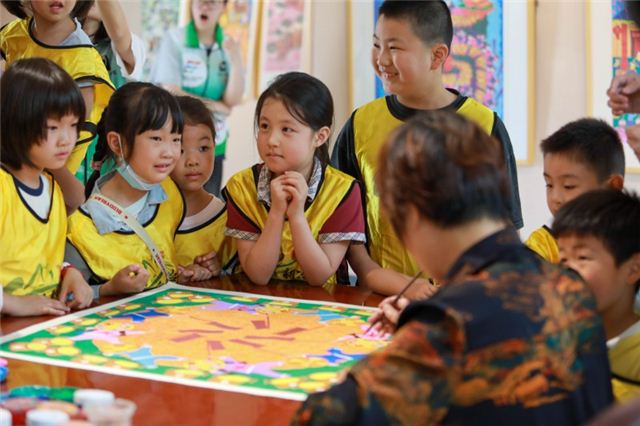 画笔很小,世界很大。团队成员用发现美的眼睛,引导孩子们进行绘画。他们强调,美育离不开寓教于乐,将兴趣、创造与快乐贯穿于教育之中,能够充分调动学生们的学习积极性,做一个“星光引路人”,让孩子们在调色盘中寻找浪漫,在绘画中寻找荣光,成为更好的自己。孩子们画群山如黛,画落日熔金,画繁花盛开。他们的画笔稚嫩,但在“小老师”的积极引导下,开始放飞想象的翅膀,走进形与色的世界,做一个个小“达芬奇”。