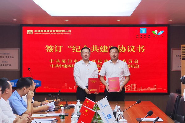 9月30日,中建四局建设发展有限公司纪委与厦门市同安区纪委监委“纪企共建”签约仪式暨同安区中建四局建设发展有限公司争创“超英廉洁文化示范点”项目启动会在同安区美峰公寓项目举行。