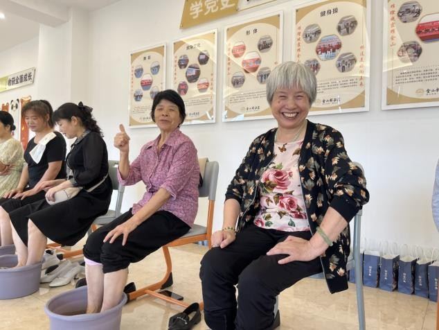 在足疗区,邻长们早早来到活动场地,接热水,备毛巾,迎接老年学员们的到来。随着温热的水汽升腾,大家纷纷落座,享受着温情时光,健康足疗过程中,邻长们不仅耐心为老人们进行按摩放松,同时还解答老人们关于脚部疾病方面问题、科普中药包泡脚的益处。