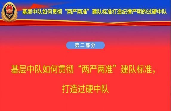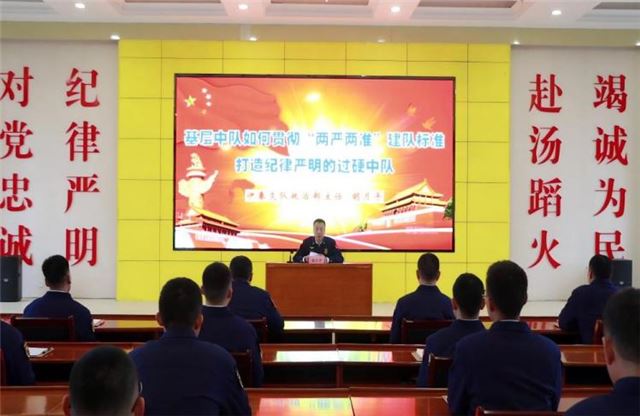 政治部胡月平主任在授课前查阅大量资料研究经典案例、仔细梳理其中要点、反复斟酌、深入思考,结合自身多年工作经历不断提炼总结,力求将最精华、最实用的内容呈现给大家,授课从“贯彻“两严两准”建队标准的重大意义,基层中队如何贯彻“两严两准”建队标准打造过硬中队”两个大方面,“三个贯彻”、“四个着眼”等七个小方面从不同的角度为全体参训学员进行授课辅导,授课主题鲜明、案例新颖,内容丰富详实、通俗易懂,既有理论高度,又有实践深度,为强化队伍纪律作风建设、遵守好工作纪律、进一步提升工作质效提供了有力指导。