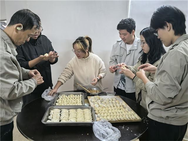 活动现场,温馨的食堂里热闹非凡,桌上摆满了面粉、饺子皮、各种馅料以及包饺子所需的工具,面团的香气和馅料的鲜香交织在一起,营造出一种令人垂涎的氛围,项目员工们默契配合,密切交谈,欢声笑语,一个个小巧可爱的饺子放入餐盘中,饱含浓浓的心意。经过几个小时的蒸煮,一盘盘热气腾腾的饺子端上了餐桌。大家围坐在一起,品尝着自己亲手包的饺子,感受着浓厚的节日氛围。