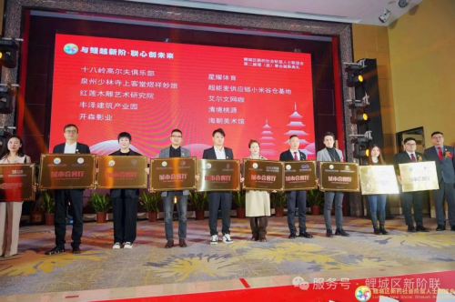 随后,进行了鲤城区新联会 10 个城市会客厅牌匾颁发仪式以及 5 个专委会授旗仪式。十八岭高尔夫俱乐部、星耀体育、上客堂等 10 个会客厅代表上台接受牌匾,法律专委会、建言献策专委会、财税专委会等 5 个专委会代表上台接受旗帜。这些会客厅与专委会的设立,将进一步拓展新联会的服务领域与活动空间,促进成员间的交流合作与资源整合,为新联会的多元化发展注入强大动力。