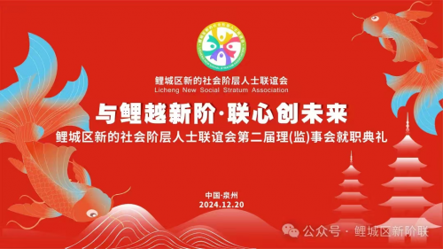 12月20日,泉州市鲤城区新的社会阶层人士联谊会(以下简称“新联会”)第二届理(监)事会暨就职典礼在鲤城区金星酒店隆重举行。此次大会以“与鲤越新阶 联心创未来”为主题,吸引了来自社会各界的广泛关注与参与,众多嘉宾及领导齐聚一堂,共同见证这一重要时刻,为鲤城区新联会的发展翻开崭新篇章。
