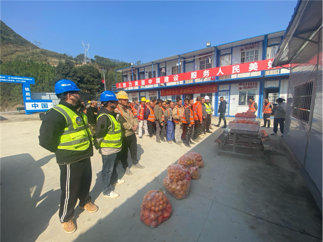 项目高度重视对一线工人的关怀与尊重,项目领导班子成员亲自带队,深入各分包队伍施工及生活区域,为辛勤工作的农民工兄弟们送上了一份精心准备的新年慰问——满载祝福的各类新鲜水果。在慰问过程中,项目负责人与工友们亲切交谈,详细了解他们的工作与生活情况,衷心感谢他们为生态园项目建设付出的辛勤努力,并叮嘱大家注意冬季施工安全和防寒保暖,确保平安健康。一份份水果传递的不仅是甘甜,更是项目对每一位建设者的深切关怀与新年祝福,现场洋溢着温馨融洽的气氛。