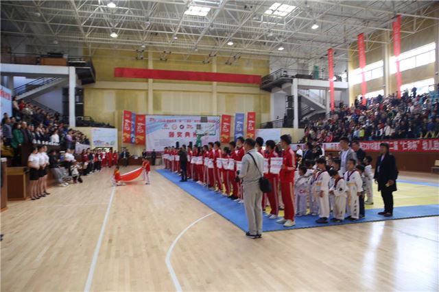 长沙师范学院副校长徐庆军、悉尼奥运会羽毛球冠军龚智超、湖南省跆拳道运动协会副主席冯利祥、湖南师范大学教育科学学院教授曹中平出席了比赛开幕式,湖南春天舞武集团有限公司董事长、湖南省跆拳道运动协会幼儿分会执行主席周贤春主持了开幕式。来自华夏艺体幼儿园、岳麓教育集团第十五幼儿园、宁乡雏鹰武道的小朋友们进行了精彩的开幕式表演,引得全场热烈的掌声。