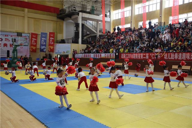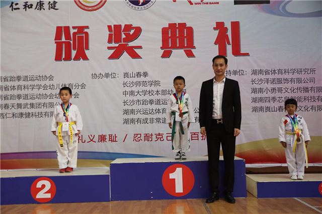 本网讯(特约记者 欧志伟)10月27日,战湘江2018湖南省第二届“仁和杯”幼儿跆拳道趣味比赛在长沙师范学院体育馆拉开序幕,本次比赛由湖南省跆拳道运动协会、湖南体育科学学会幼儿体育分会指导,湖南省跆拳道运动协会幼儿分会主办,湖南春天舞武集团承办,峎山春拳、长沙师范学院、中南大学校本部幼儿园、长沙市跆拳道协会、湖南兴运达体育文化有限公司、湖南有成非常道心里咨询有限公司共同协办,共有来自全省32家道馆、幼儿园的270名小运动员参赛。
