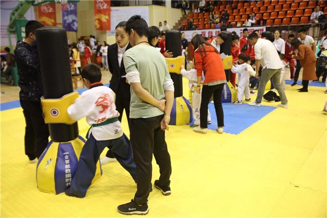 本次比赛由品势、实战、快腿王、亲子项目等四个部分组成。比赛中,小选手们用自己坚韧的意志,标准有力的动作,完成了一整套跆拳道品势,博得现场观众和评委老师们的阵阵喝彩,小朋友们饱满的精神状态,自信大方的气场,充分展现出了跆拳道运动的文化内涵。竞技比赛结束后,小选手们还进行了跆拳道“快腿王”比拼,由专业计数器记录小选手们一分钟内的踢腿速,最高的小选手竟踢出了百余次腿,引得评委老师们的集体点赞。虽然这次比赛主题是跆拳道,但是也有亲子运动项目,本次比赛的裁判长对此做了解释:父母的陪伴是最好的教育,父母陪伴的比赛是最有意义的比赛,它将给孩子带来成长过程中最宝贵的精神财富。基于这一点,组委会特意设置了亲子项目。