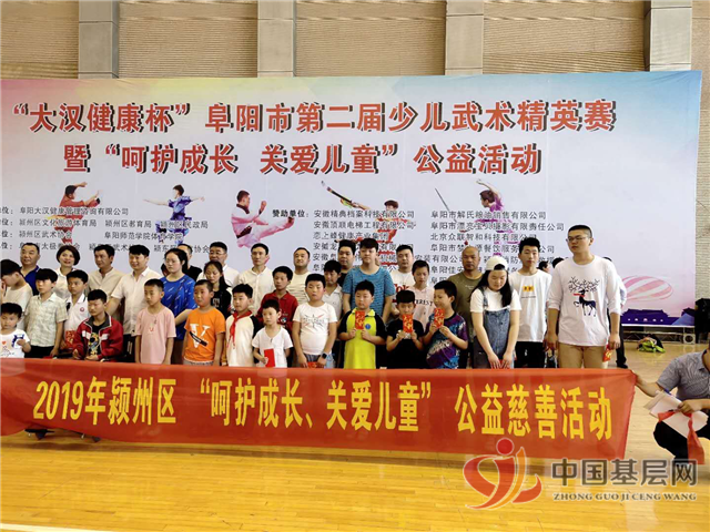 中国基层网电阜阳(记者张淼 通讯员车峰 李胜友)5月25日,由阜阳市颍州区民政局、颍州区文化旅游体育局、颍州区教育局联合主办2019年“大汉健康杯”第二届阜阳市少儿武术精英赛暨“呵护成长 关爱儿童”大型公益活动在阜阳师范学院西区体育馆举行。颍州区民政局主要负责人、颍州区教育局主要负责人、颍州区文化旅游体育局主要负责人等参加了上述公益活动。
